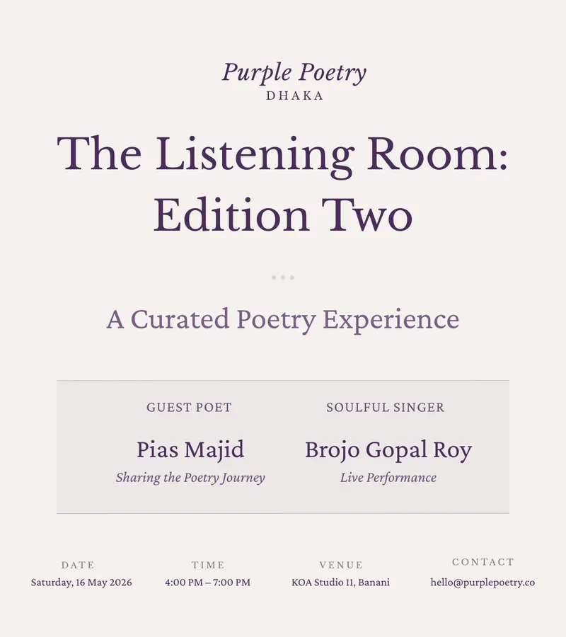 The Listening Room is an intimate poetry gathering curated by Purple Poetry Dhaka, created for those who believe poetry deserves attentive listening.